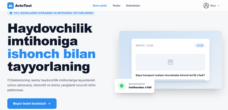 Avto Test – Haydovchilik guvohnomasi uchun onlayn test platformasi